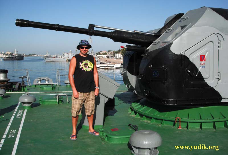 Полдня в открытом море (примерно 10-15 км от берега), мы общались с военными моряками, лазили по ракетоносцу, расспрашивали команду обо всём, что не засекречено, фотографировали и фотографировались. Для меня всё это было особенно экзотично, потому что на протяжении почти всей моей жизни, не то что попасть на военный корабль, но и приехать в Севастополь было невозможно: это был «закрытый» город.