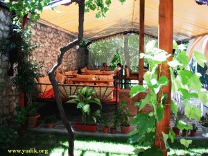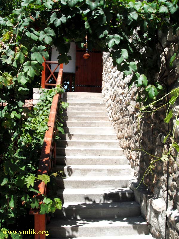 На протяжении последующих 10 дней неоднократно радовались тому почти случайному стечению обстоятельств, что определило место отдыха и хозяев. Нам предоставили 2 комнаты с кухней (оснащённой всей необходимой утварью) на дворе. Удобства тоже находились в отдельных помещениях, что совершенно нас не напрягало. Двор был под тенью размашистой виноградной лозы, поэтому обедать в жаркий полдень было комфортно. Кроме нас были другие жильцы: две худые и тихие девушки, почти незаметные и две семьи, в каждой из которых по трое детей разного возраста. У хозяев, относительно молодых Алексея и Юлии тоже были дочка Вероника 6 лет и сын Дима 1,5 года. Постоянно во дворе находилась миролюбивая старая овчарка Грызя. Машину мы очень удобно запарковали на территории участка с отдельными воротами.